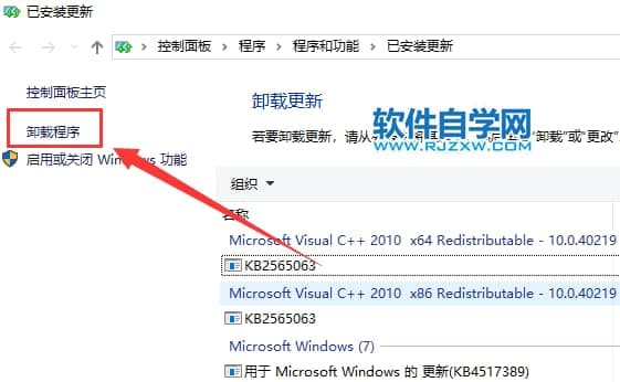 3、然后在打开的界面中,找到“卸载更新”字样,鼠标点击。
