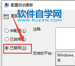 4、在展开的部分找到“配置自动更新”双击进入。在打开的页面左边,默认是“未配置”选项,如果要关闭自动更新,可以将“已禁用”选项选中。如果要恢复自动更新时,就这个选项设置为“未配置”即可。