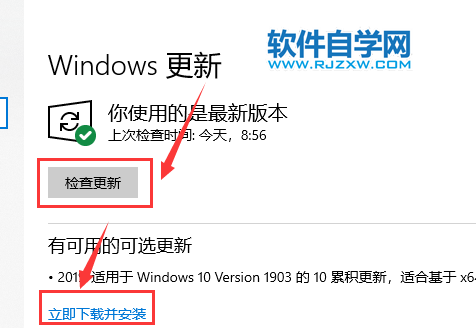2、然后在打开的窗口中找到“检查更新”检查是否需要更新。如果有,下方会有“立即下载并安装”提示,点击安装即可。