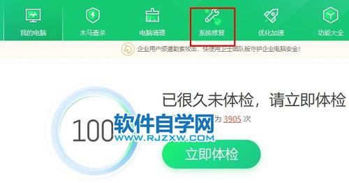 1、首先用户需要使用到安全软件,这里举例为360安全卫士。