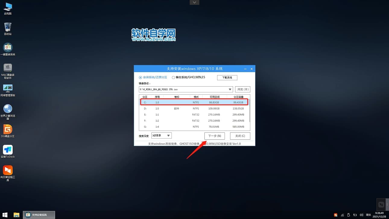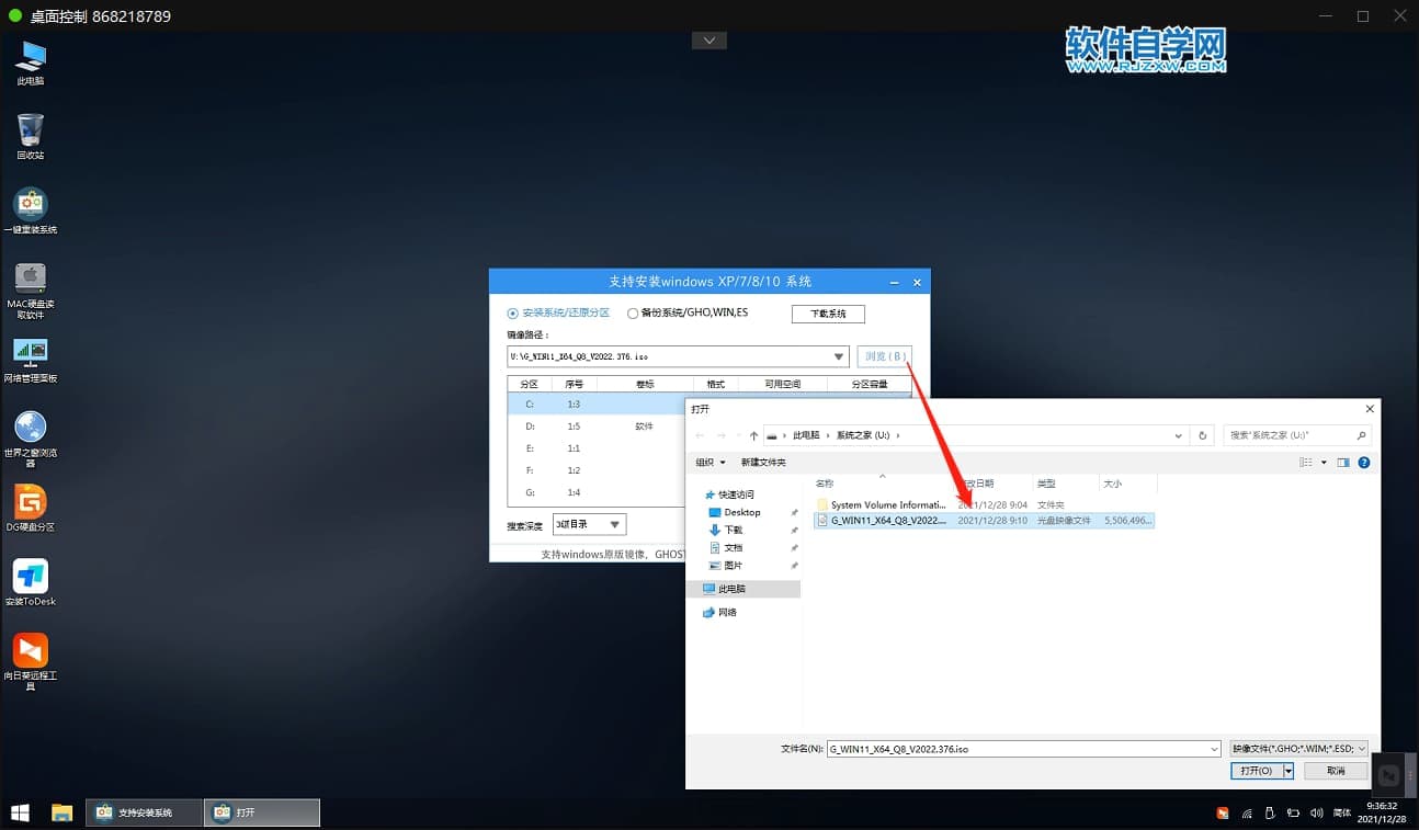 3)、然后点击浏览,选择U盘中想要安装的系统。