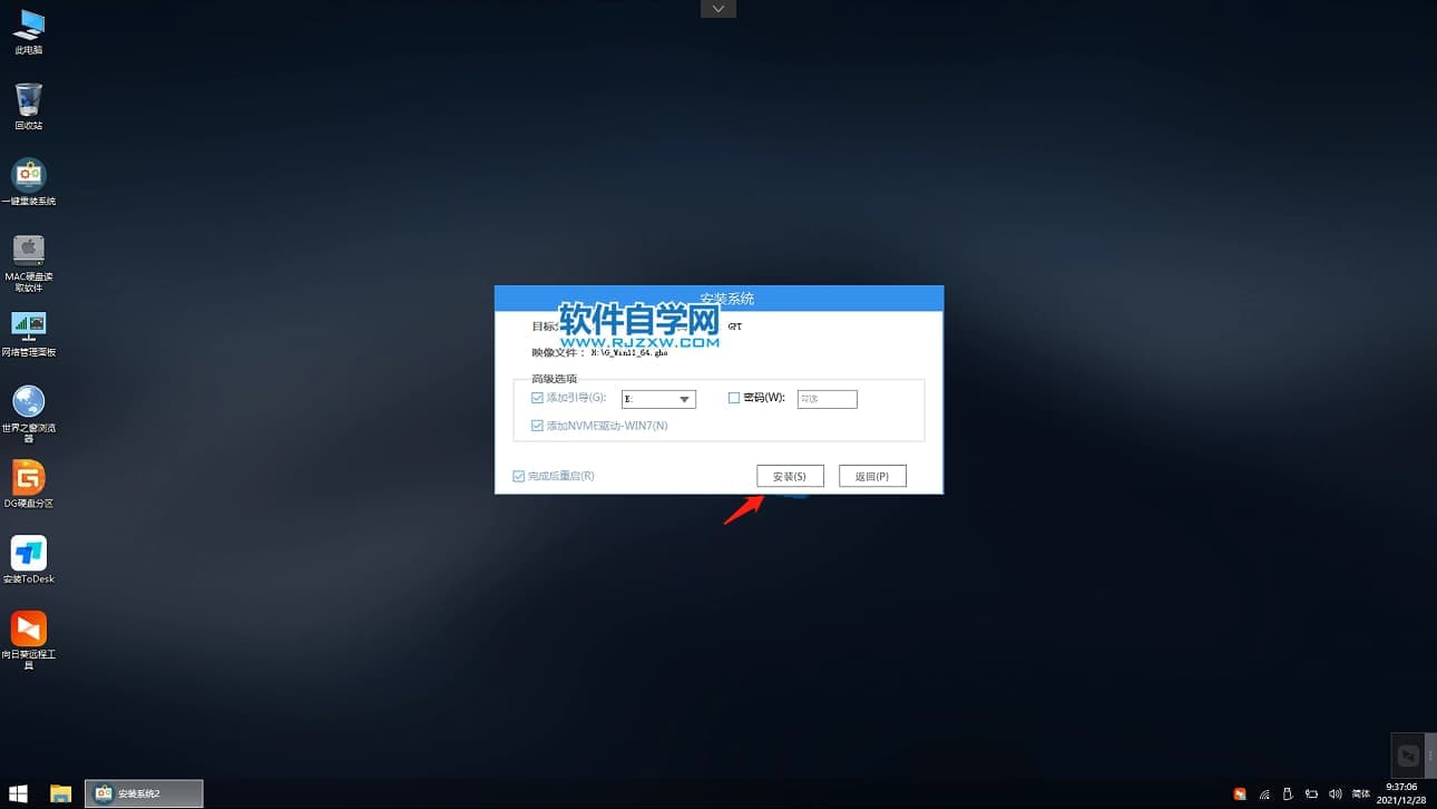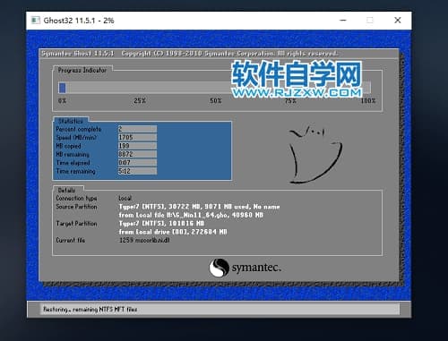 7)、备份完成后,拔掉U盘重启电脑,系统就会自动进入系统安装界面。