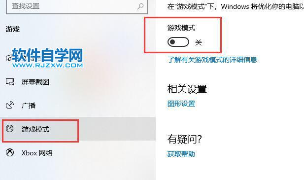 3、然后在【游戏模式】选项卡中,将【游戏模式】给关闭。