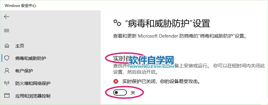 1、打开Windows Defender的实时保护;