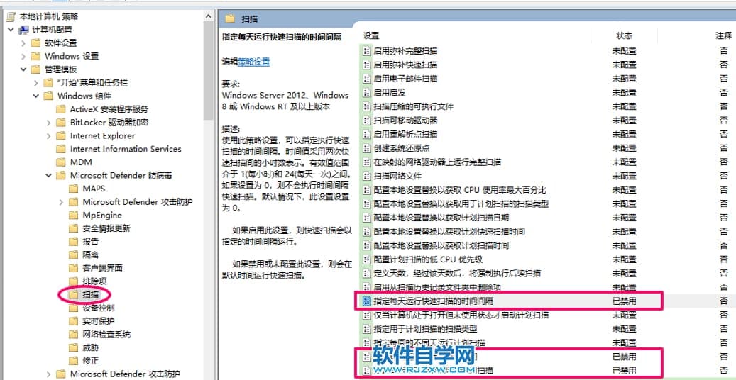 然后打开“扫描”,将里面的以下几项设置为“已禁用”: