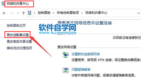 4、最后在网络和共享中心菜单中,点击更改适配器设置按钮,重新启用网络即可。