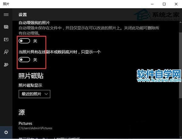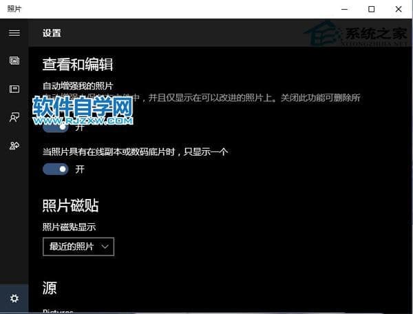 2、打开照片应用后,点击左下角“设置”按钮,如下图;