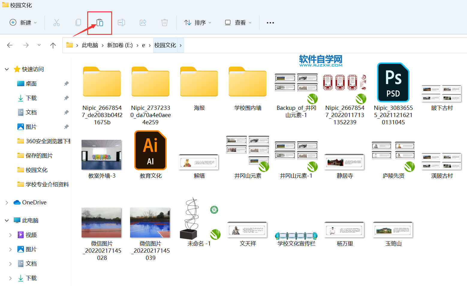 第4步、进入另一个文件夹中,点击上面的粘贴工具。