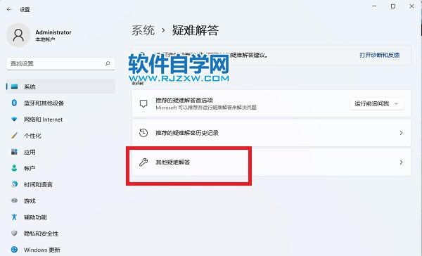 1、首先,点开始菜单然后打开设置,或者按Win+i 键进入设置页面,点击系统 → 疑难解答,再点击选项下的【其他疑难解答】。