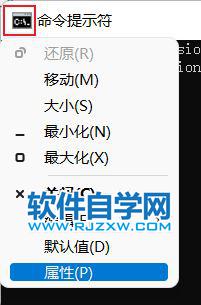 3、如果要永久更换编码,需要点击命令提示符旁边的【图标】,展开的下拉项中,选择【属性】;