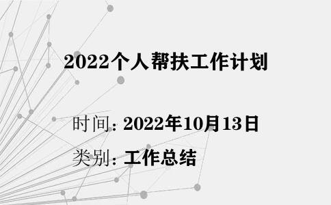 总结不仅仅是总结成绩,更重要的是为了研究经验,发现做好工作的规律,也可以找出工作失误的教训。这些经验教训是非常宝贵的,对工作有很好的借鉴与指导作用,在今后工作中可以改进提高。下面小编给大家带来2022个人帮扶工作计划,希望大家喜欢!
