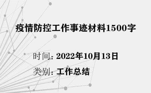 疫情防控工作事迹材料1500字有哪些?在日常的学习、工作、生活中,要用到事迹材料的地方还是很多的,事迹材料具有概括标明先进事迹的主要内容或材料的用途。下面是小编为大家整理的疫情防控工作事迹材料1500字,仅供大家参考借鉴,希望大家喜欢!