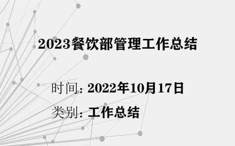 总结能让上级迅速了解工作情况,工作总结就是把一个时间段的工作进行一次全面系统的总检查、总评价、总分析、总研究,并分析成绩的不足,从而得出引以为戒的经验。以下是小编为大家精心搜集和整理的2023餐饮部管理工作总结,希望大家喜欢!