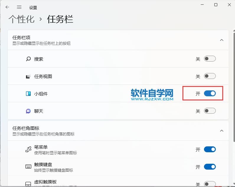 win11如何关闭小组件?win11关闭小组件的方法 日期:2025-12-05 17:52:29 栏目:系统教程 浏览:9 评论:0 1、点击开始菜单图标。 2、点击设置图标。 3、点击个化性。 4、点击任务栏。 5、关闭小组件。 标签: #win11小组件 上一篇:Win11电脑使用flushdns命令后无法上网怎么解决 下一篇:如何关闭Win11壁纸自动更换? 相关推荐 工作总结怎么写范本10篇 2022年简短的半年工作总结10篇 win11怎么显示视频图标 2022上半年工作总结汇报10篇 评论留言 我要留言 ◎欢迎参与讨论,请在这里发表您的看法、交流您的观点。 昵称:* 邮箱:* 网址: 内容: 取消回复