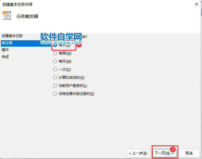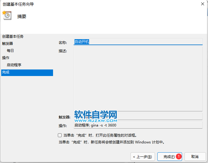8、输入:gina ,添加参数,-S -T 3600,点击【下一页】。