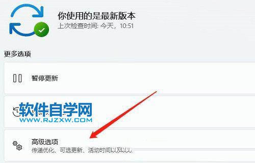 3、接着在更多选项下,点击【高级选项(传递优化、可选更新、活动时间以及其他更新设置)】;