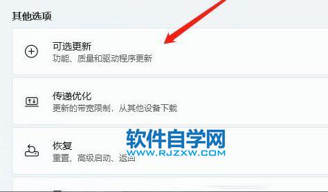 4、其他选项下,点击【可选更新(功能、质量和驱动程序更新)】;