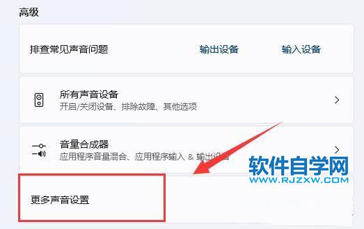 2、声音设置窗口,高级下,点击【更多声音设置】;