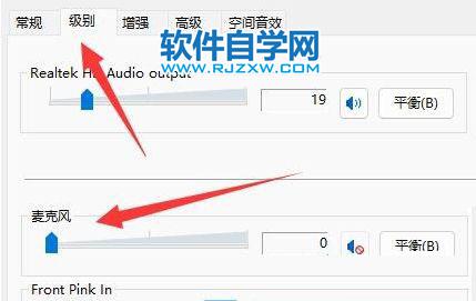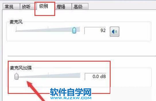 6、切换到【级别】选项卡,将麦克风加强修改为【0】即可。