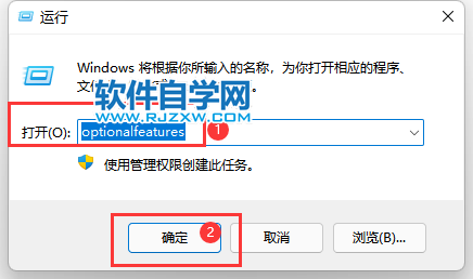 1、开启功能,同时按下Windows和R然后输入optionalfeatures并按下Enter或单击OK。