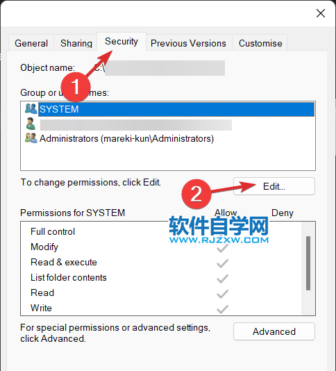 4、导航到安全选项卡,然后单击编辑按钮。