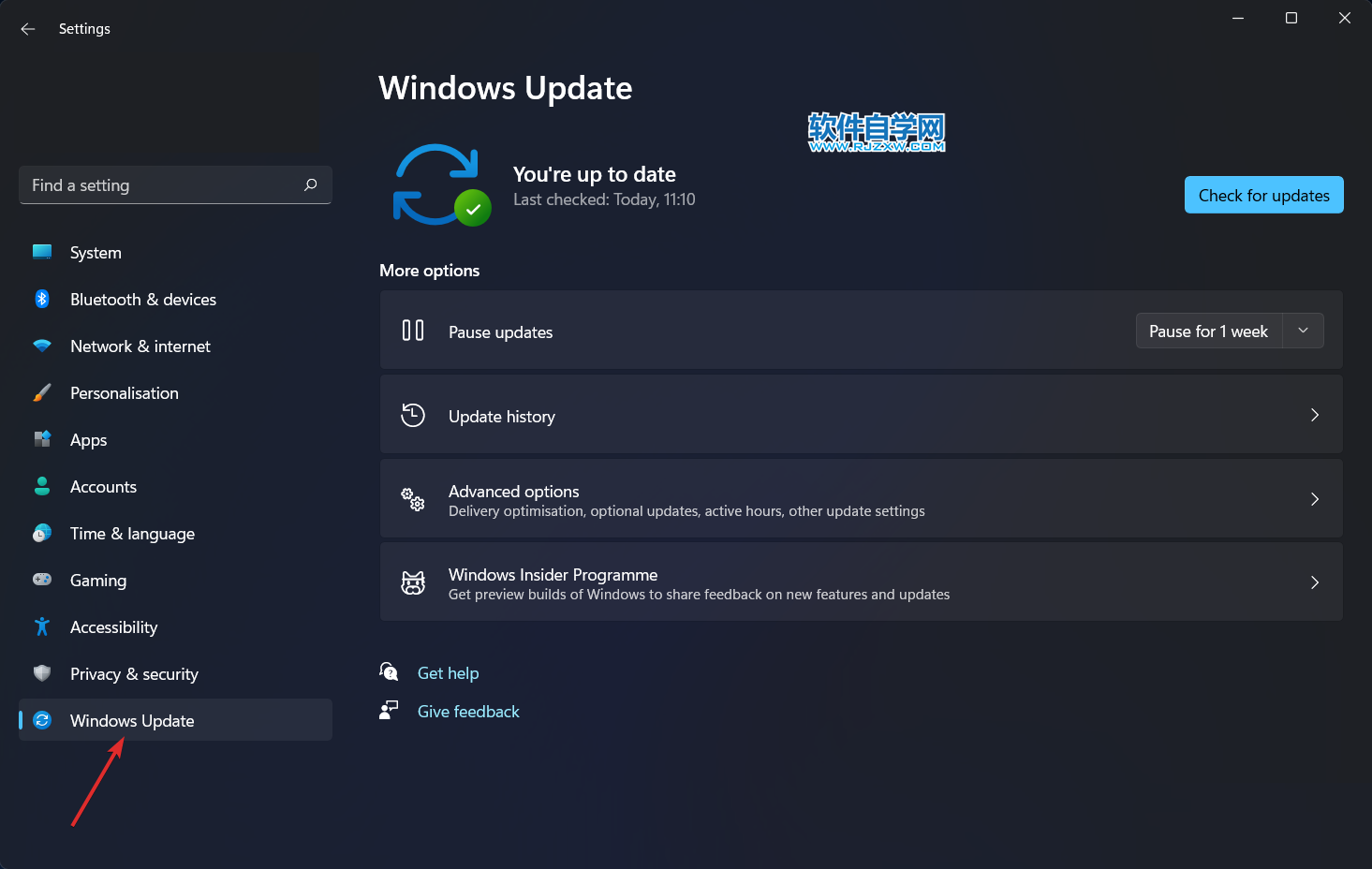 7、更新视窗,首先打开“设置”应用。一种方法是同时按下Windows+ I。然后从左侧导航到Windows 更新。