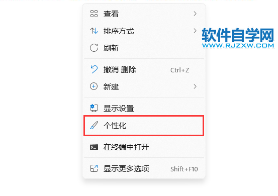 1、首先我们右键点击桌面空白处,在下方选择“个性化”。