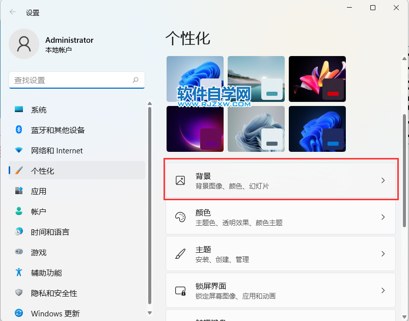 2、进入个性化设置后,在左侧边栏中找到“background”或者“背景”。
